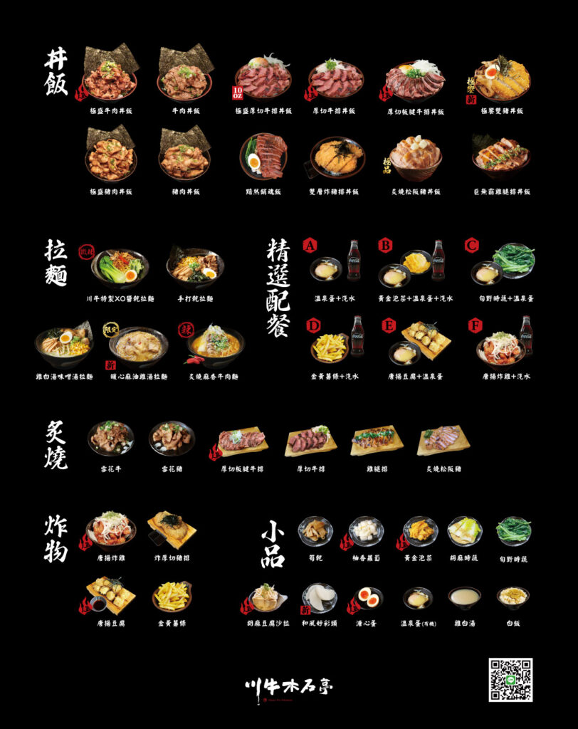 川牛供了A-F多樣配餐,可以滿足不同族群的味蕾的需求,也有搭配飲料的選擇~選項非常多元!