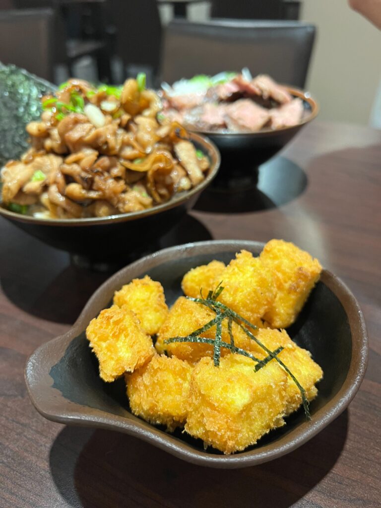 套餐裡的唐揚豆腐的外表酥脆,豆腐質地非常柔軟嫩滑,口感豐富。它有著豆腐本身的清香味道,但同時也帶有一點鹹味。輕咬一口豆香在口中崩散,喜歡炸物的不要錯過喔!