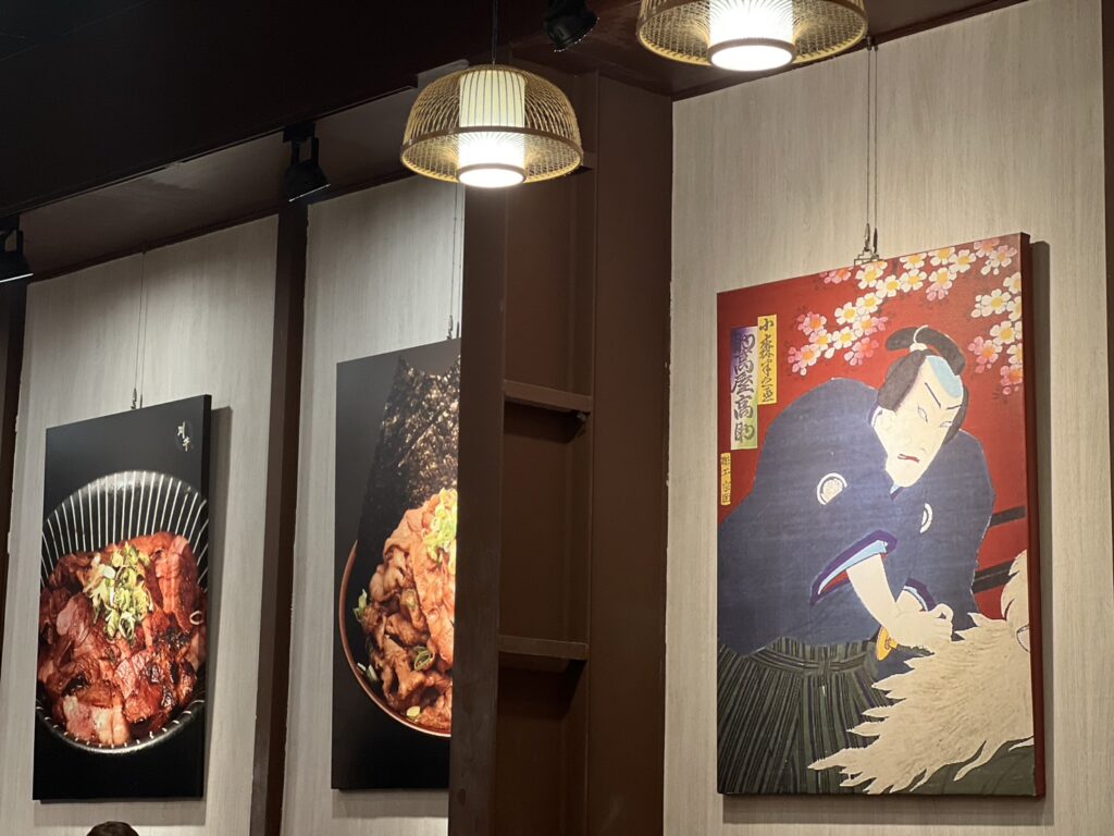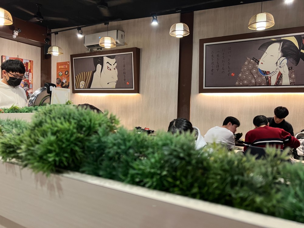等餐點的時候,可以觀察到店內的裝潢也融入一些傳統的日本元素,利用一些日式壁畫、日式竹片暖燈等,更能營造日本文化的獨特風格。